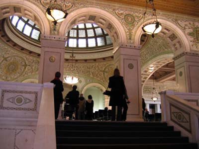 DESCRIPTION: This Tiffany artist created the dome in the Prestion Bradley Hall. Mosaics of Favrile glass, mother of pearl, and gold are inlaid in marble.