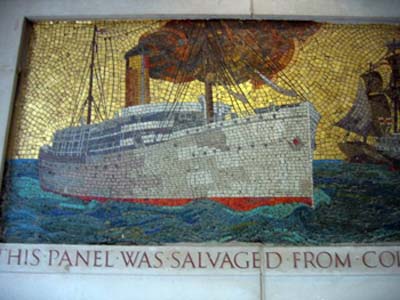 TITLE: Reliance House LOCATION: Tower Gardens, just off Water Street DESCRIPTION: Reliance House in Tower Gardens, just off Water Street is a Government Home Office building. In its entry porch it has two excellent mosaic panels which were originally housed in Colonial House. Colonial House was destroyed by bombs during the second world war on 3rd May 1941. Luckily the mosaic survived and were re-erected in their current site. CONTRIBUTOR: John O'Brien - Kew, Surrey, United Kingdom |