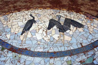 TITLE: Rio Amistad ARTIST: Susan Springer of Illahe Tileworks and Karen Rycheck LOCATION: Guanajuato Way, on the creek at the beginning of Lithia Park DESCRIPTION: Detail in the mosaic pathway. The night before, some wind and sprinkles littered the surface with pine needles and debris. I wished I'd had a broom before taking the photo! CONTRIBUTOR: Lynn Adamo - Oregon, USA |