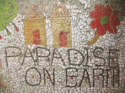 Materials used include recycled ceramic tile, shells and beach stones. Completed in 2005. Related Website CONTRIBUTOR: Laurel True - Oakland, CA, USA |